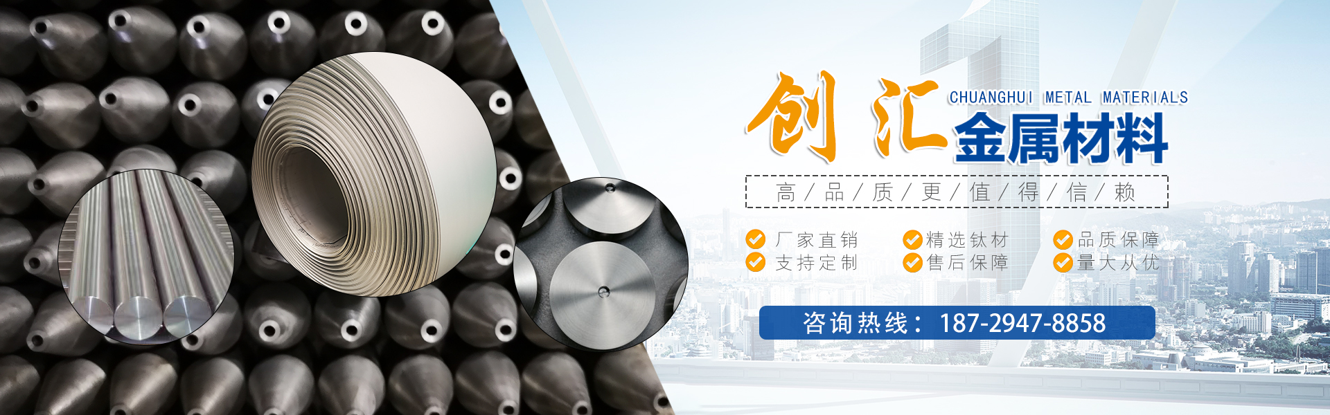 寶雞市創(chuàng)匯金屬材料有限公司,位于有“中國鈦谷”之稱寶雞寶鈦路南段,這里也是國家重點支持和扶持的有色金屬材料資源產(chǎn)業(yè)基地,我司專業(yè)從事鈦、鋯、鉿、鎳鉻、鎢鉬、鉭鈮、合金材料、復合材料,板、棒、絲、管、箔材等,設備制造,金屬制品機械加工銷售。